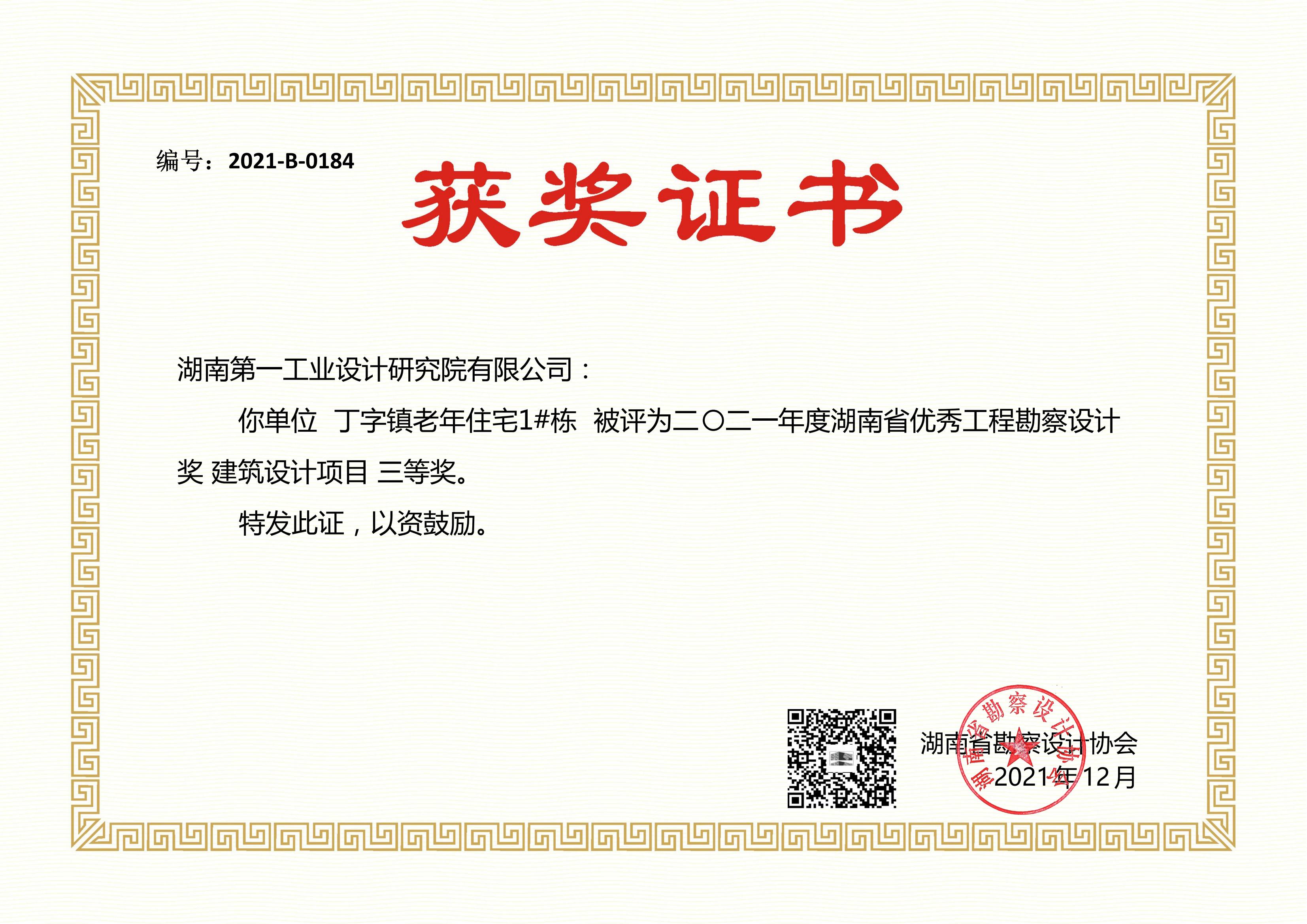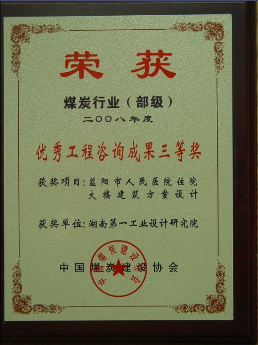 湖南省優(yōu)秀設計表揚金獎(1984)